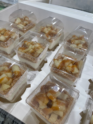 Ingredients: Granny Smith apples, cream cheese, granulated sugar, brown sugar, eggs, vanilla extract, butter, graham crackers, cinnamon, enriched flour bleached (wheat flour, niacin, iron, thiamin mononitrate, riboflavin, folic acid), corn syrup, palm oil, baking soda, salt, sodium aluminum phosphate, high fructose corn syrup, nonfat milk, fructose, modified corn starch, potassium sorbate, caramel color, vanillin, yellow 6, red 40.