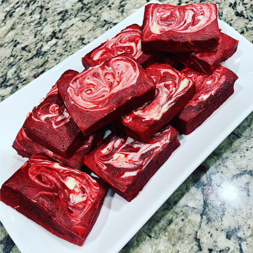 Red Velvet Cheesecake Brownies orders of 6 brownies.